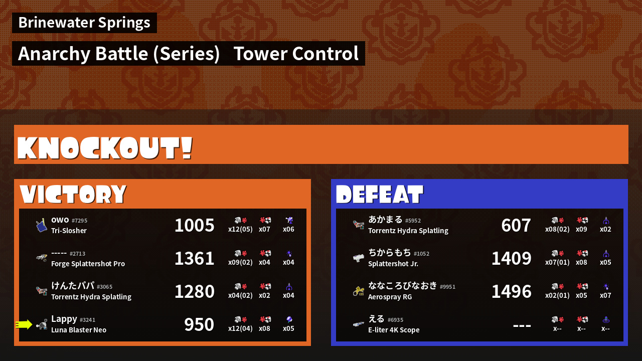 | Mode | Tower Control - Anarchy Battle (Series) |