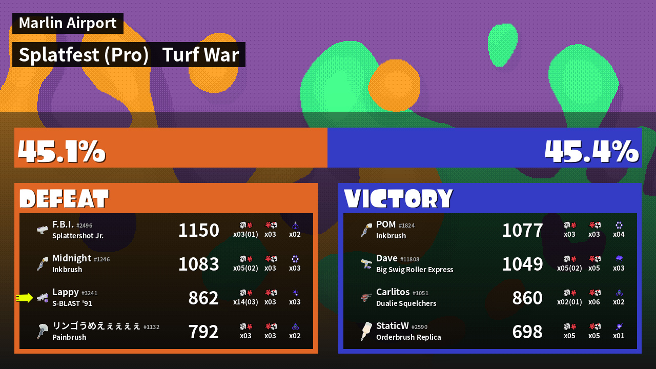 | Medals | #1 Overall Splatter #1 Popular Target #1 Enemy Splatter | ||