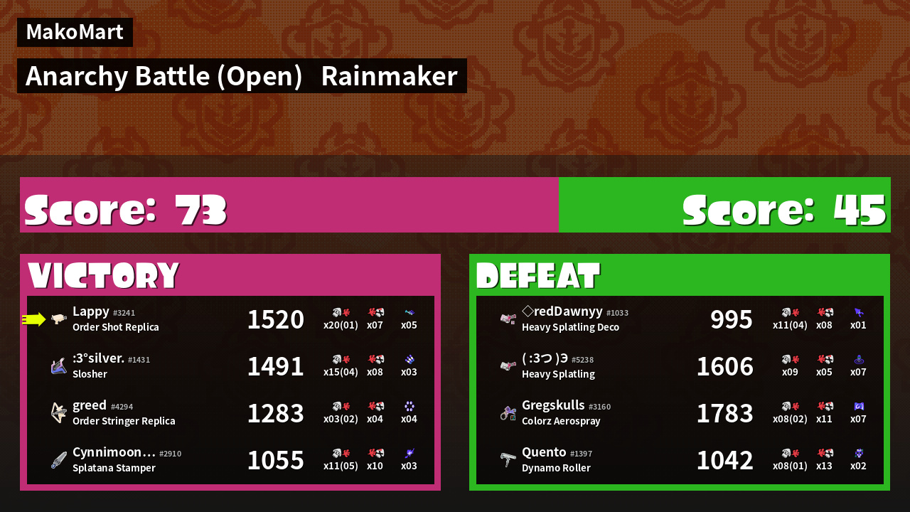 | Mode | Rainmaker - Anarchy Battle (Open) |