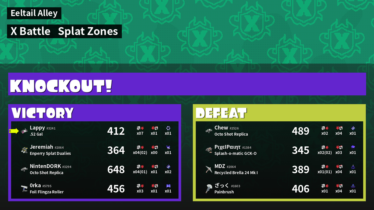 | Mode | Splat Zones - X Battle |