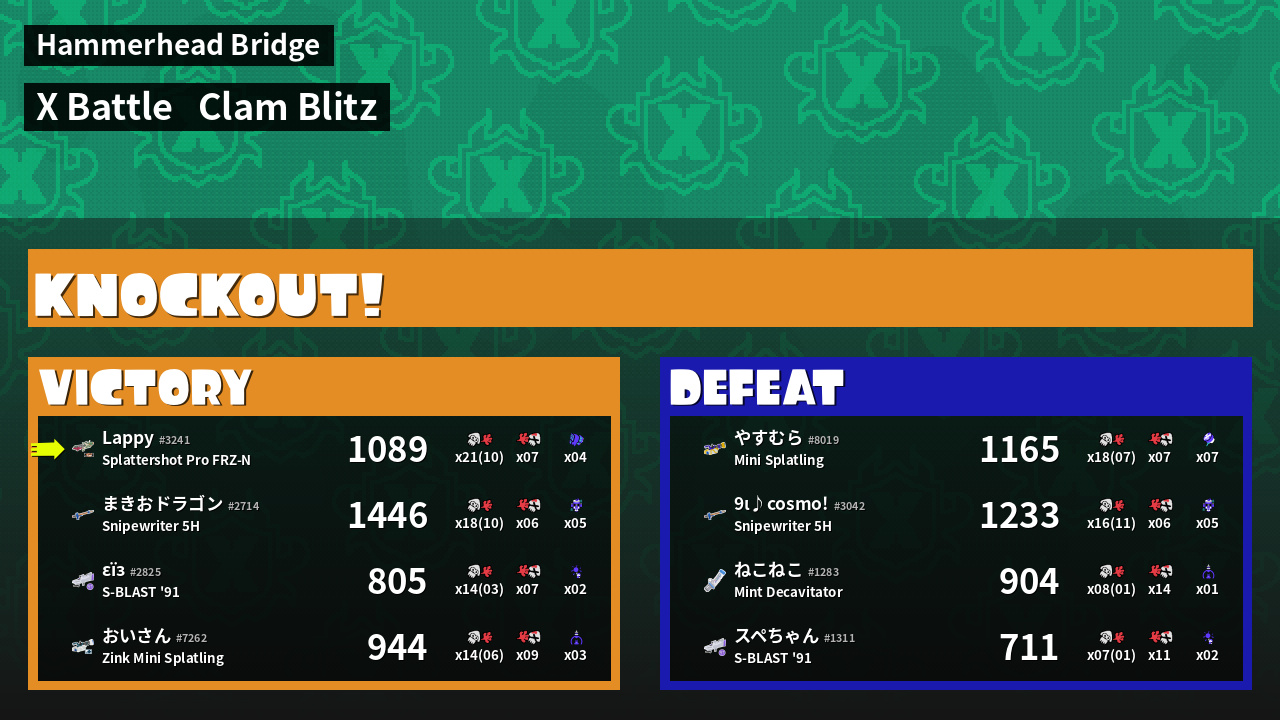 | Mode | Clam Blitz - X Battle |