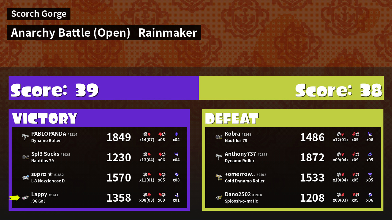 | Mode | Rainmaker - Anarchy Battle (Open) |