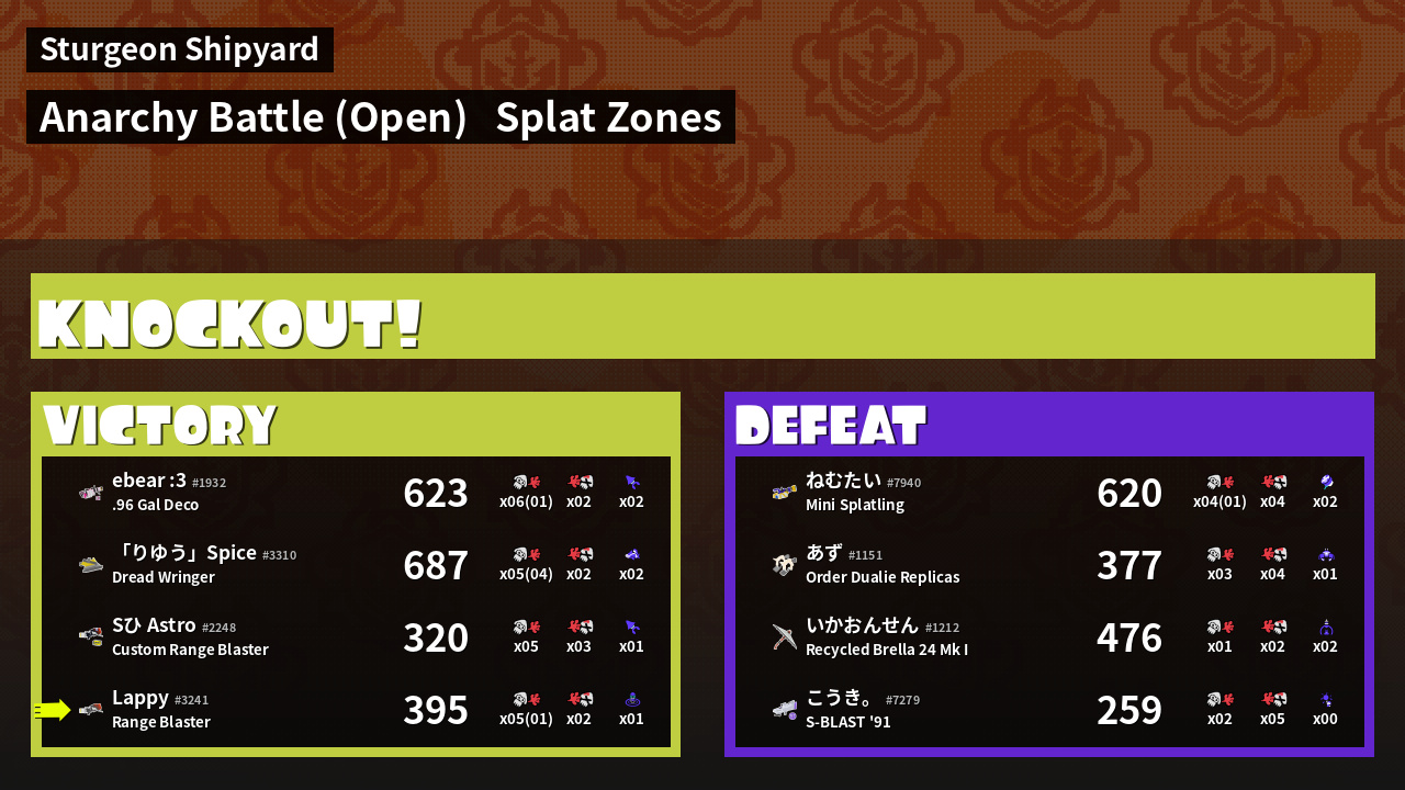 | Mode | Splat Zones - Anarchy Battle (Open) |