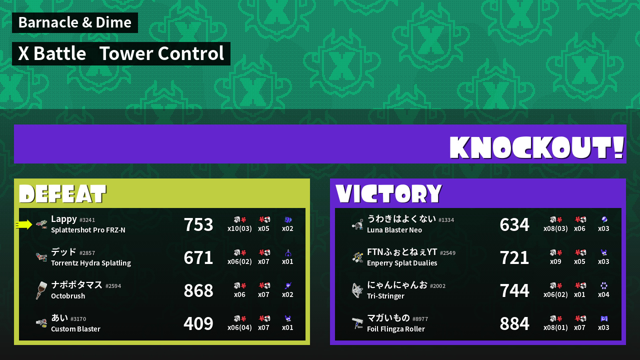 | Medals | #1 Overall Splatter #1 Super Jump Spot #1 Enemy Splatter |
