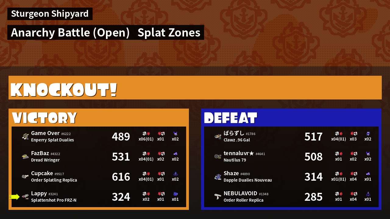 | Mode | Splat Zones - Anarchy Battle (Open) |