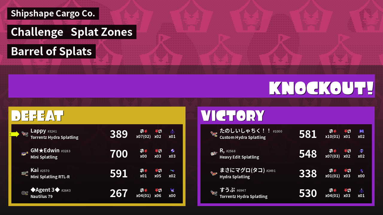 Challenge | Barrel of Splats Muster as much firepower as you can<br />in this battle of the splatlings! |