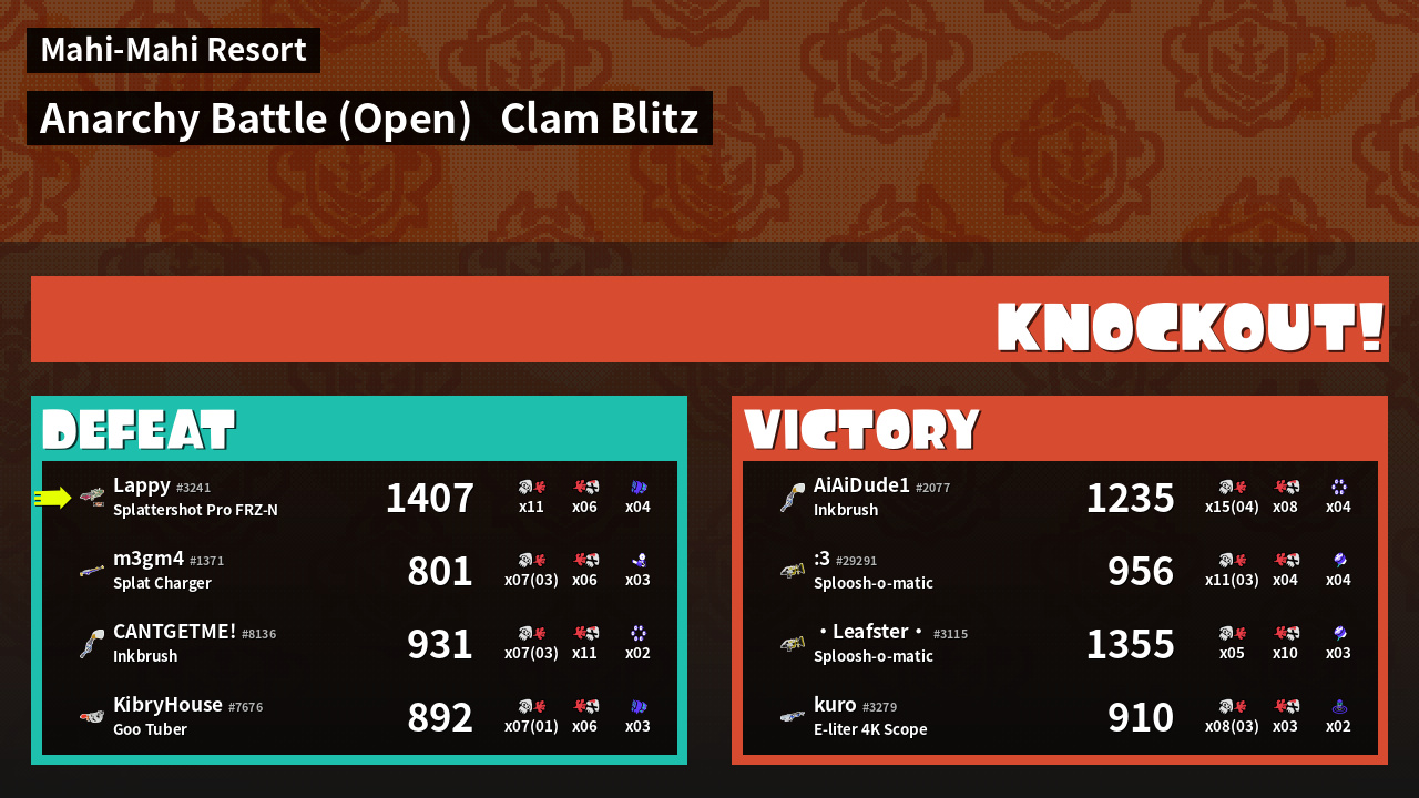 | Mode | Clam Blitz - Anarchy Battle (Open) |