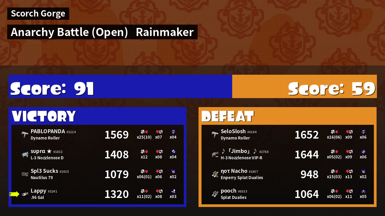 | Mode | Rainmaker - Anarchy Battle (Open) |