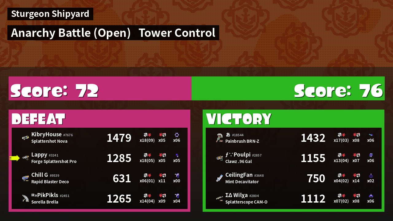 | Mode | Tower Control - Anarchy Battle (Open) |