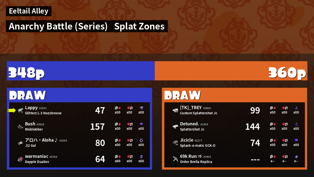 | Mode | Splat Zones - Anarchy Battle (Series) |