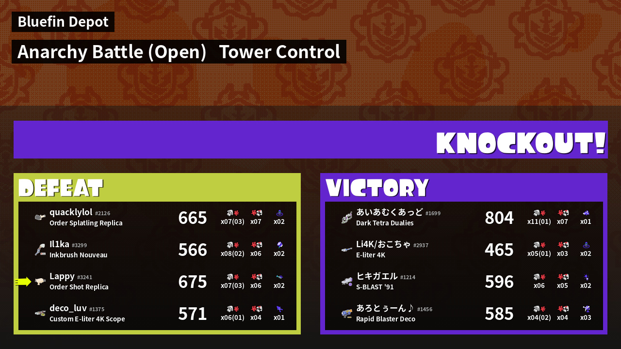 | Medals | #1 Turf Inker #1 Splat Assister #1 Tower Stopper |