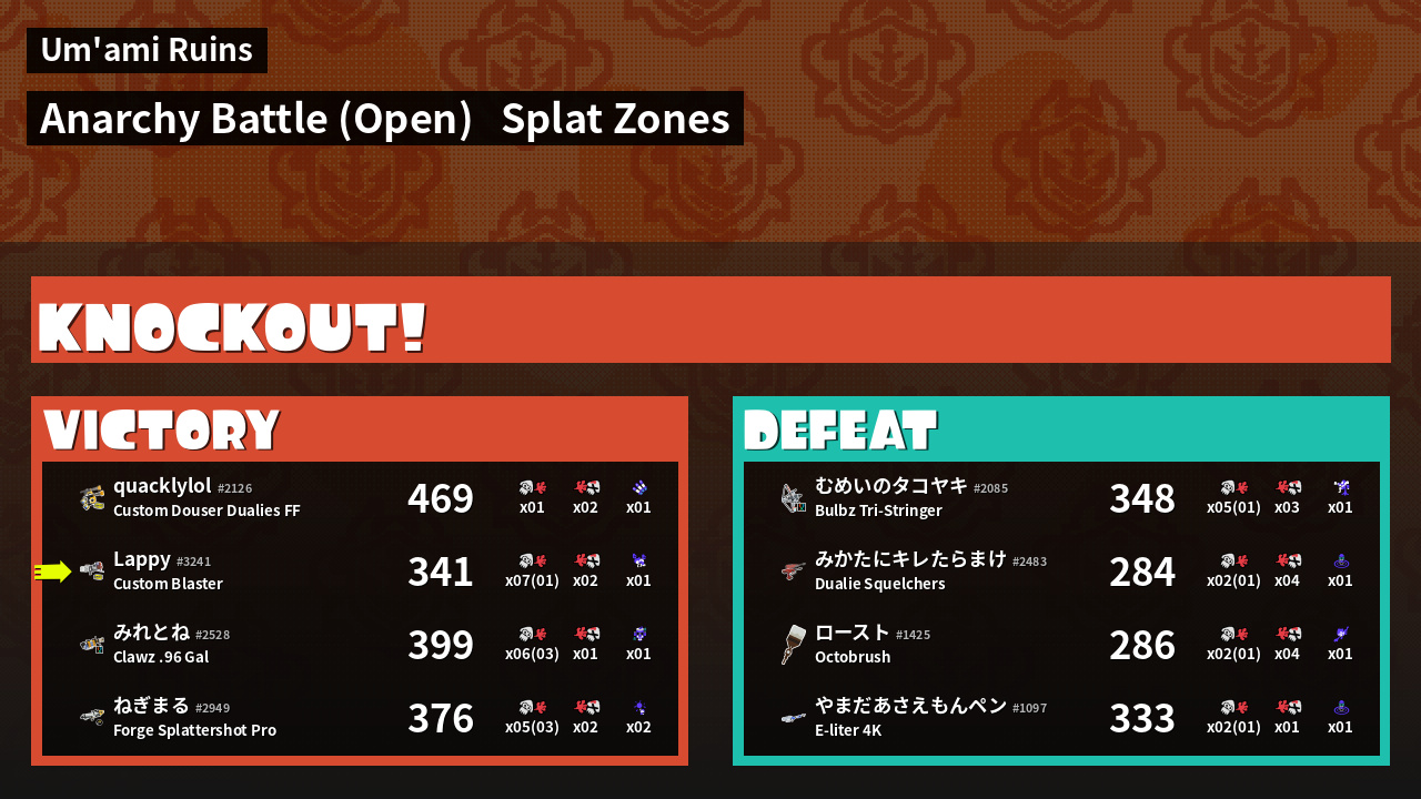| Mode | Splat Zones - Anarchy Battle (Open) |