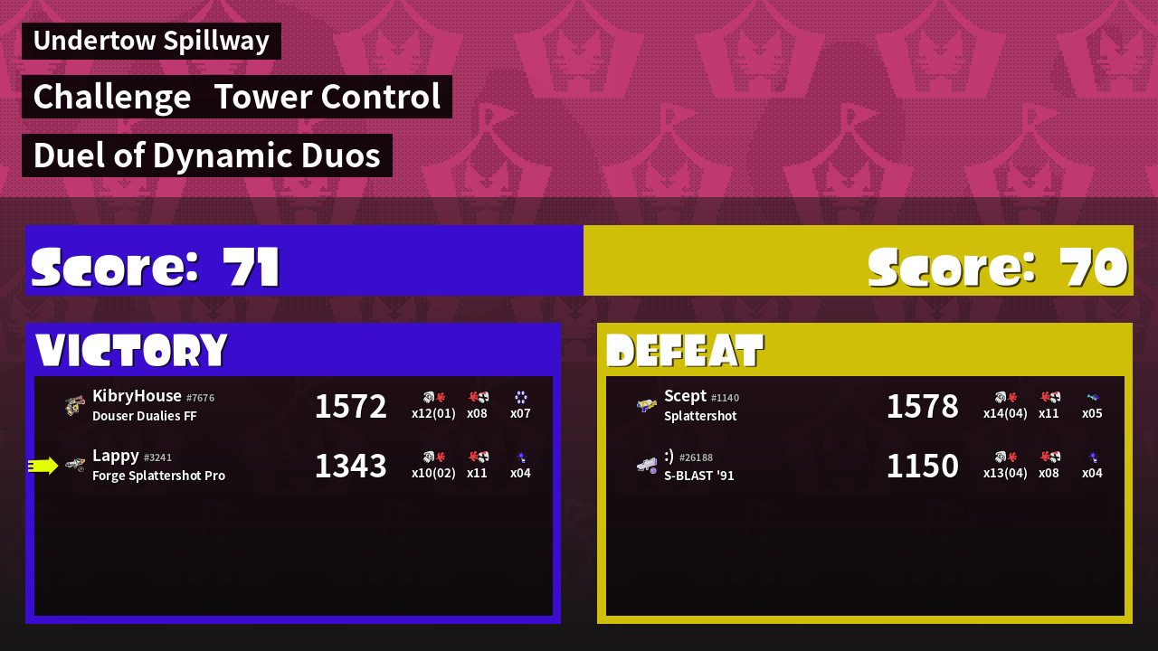 | Medals | #1 Popular Target #1 Super Jump Spot #1 Splat Assister |