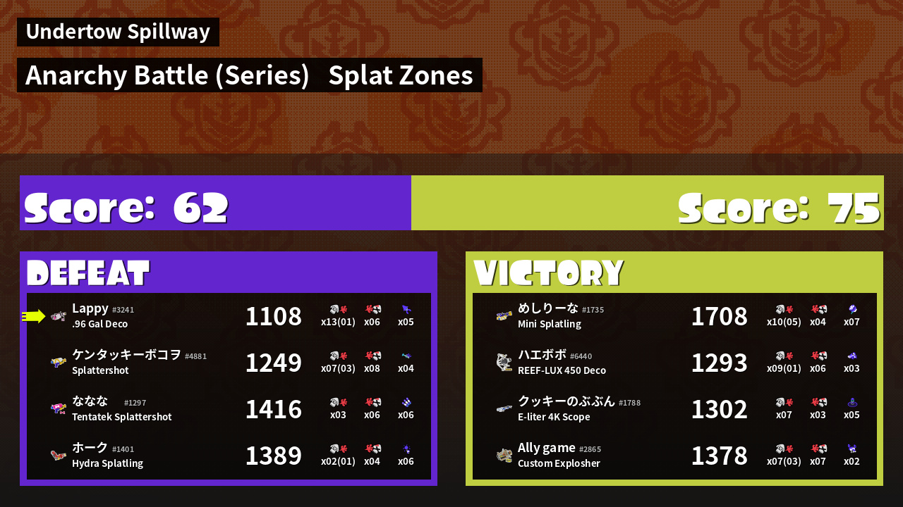 | Mode | Splat Zones - Anarchy Battle (Series) |