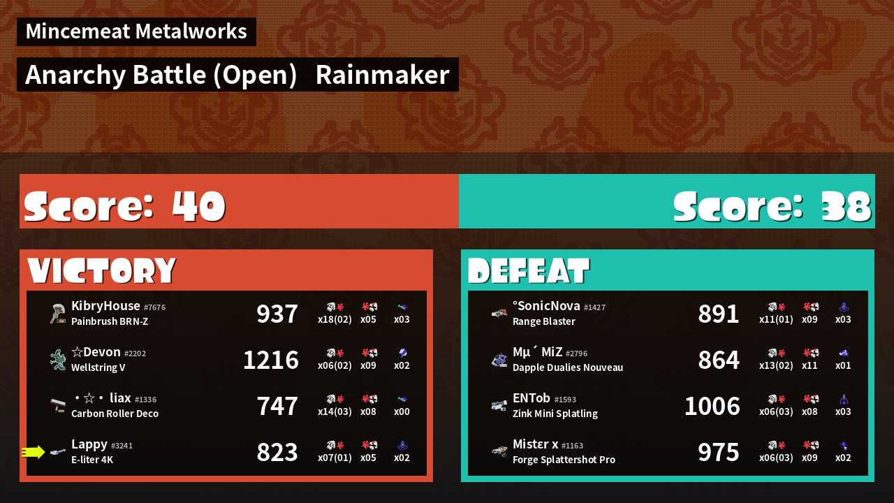 | Mode | Rainmaker - Anarchy Battle (Open) |