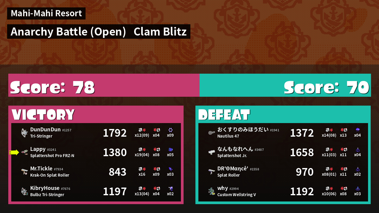 | Mode | Clam Blitz - Anarchy Battle (Open) |
