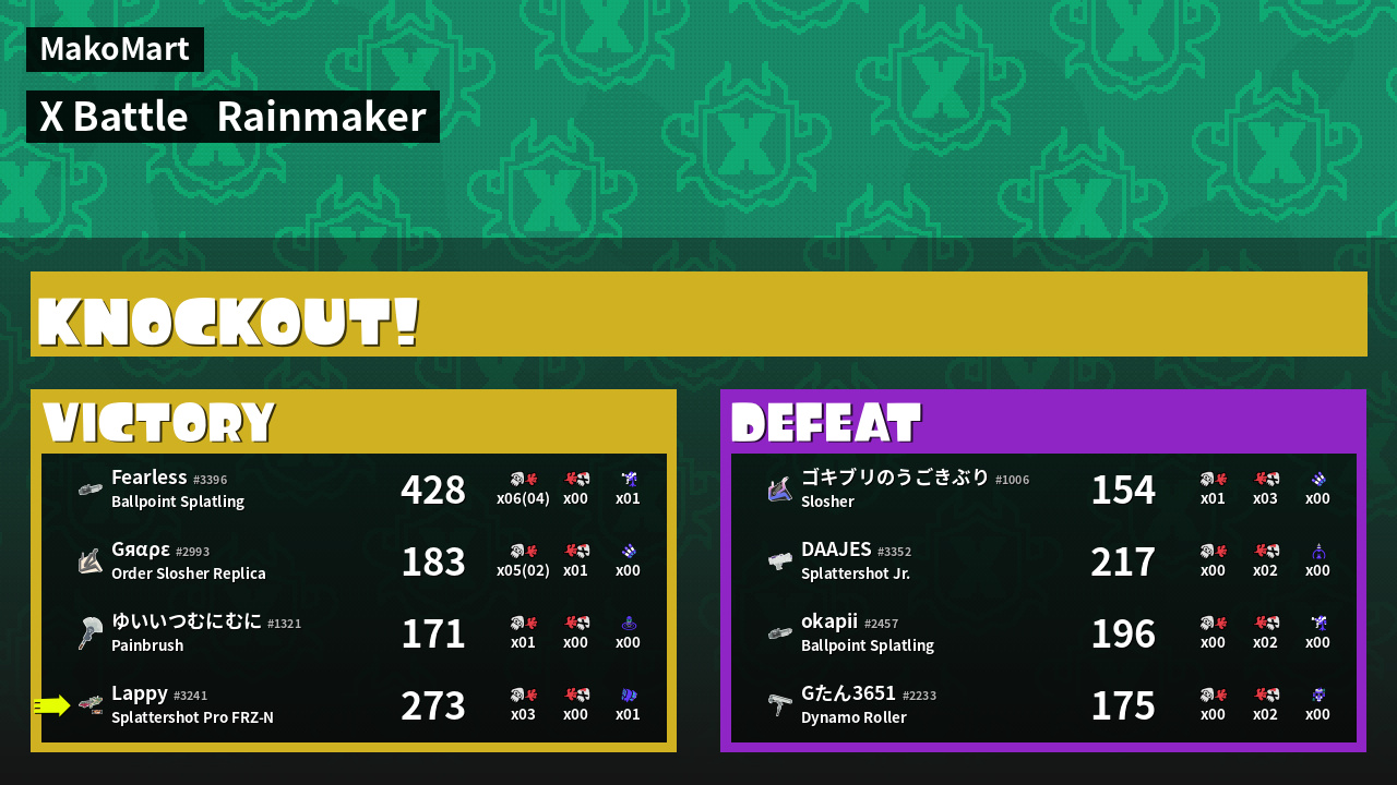 | Medals | #1 Enemy Splatter #2 Turf Inker |