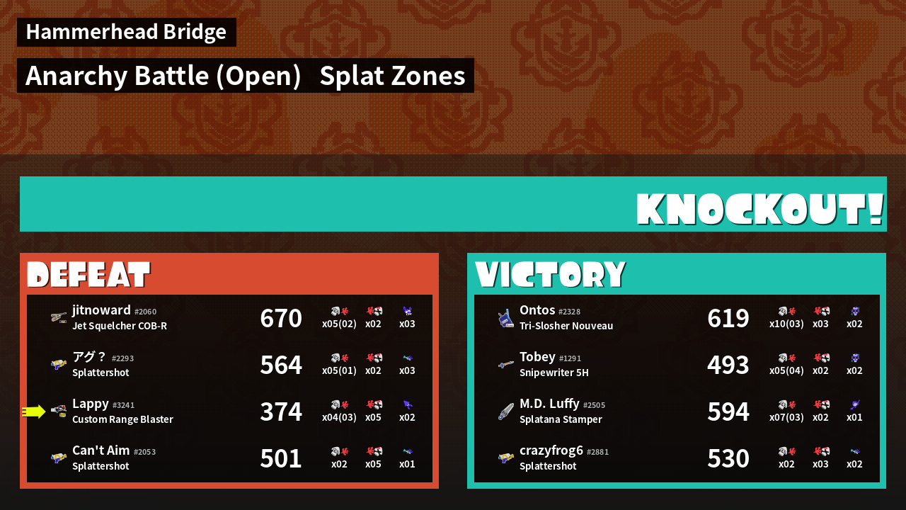 | Mode | Splat Zones - Anarchy Battle (Open) |