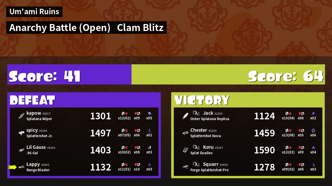 | Mode | Clam Blitz - Anarchy Battle (Open) |