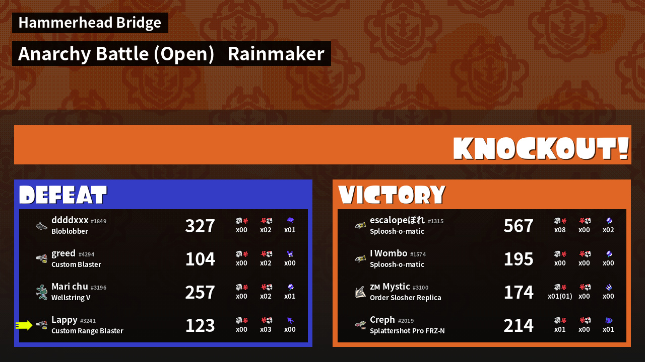 | Weapon | Custom Range Blaster ( Splat Bomb / Kraken Royale) |