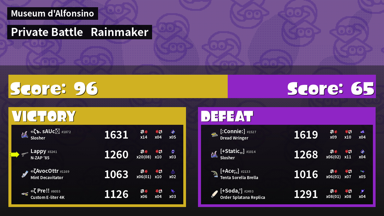 | Medals | #1 Overall Splatter #1 Splat Assister #1 Rainmaker Stopper |