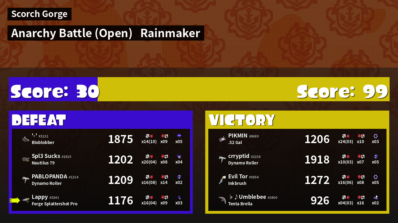 | Mode | Rainmaker - Anarchy Battle (Open) |