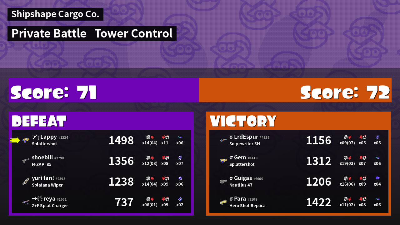 | Weapon | Splattershot ( Suction Bomb / Trizooka) | ||