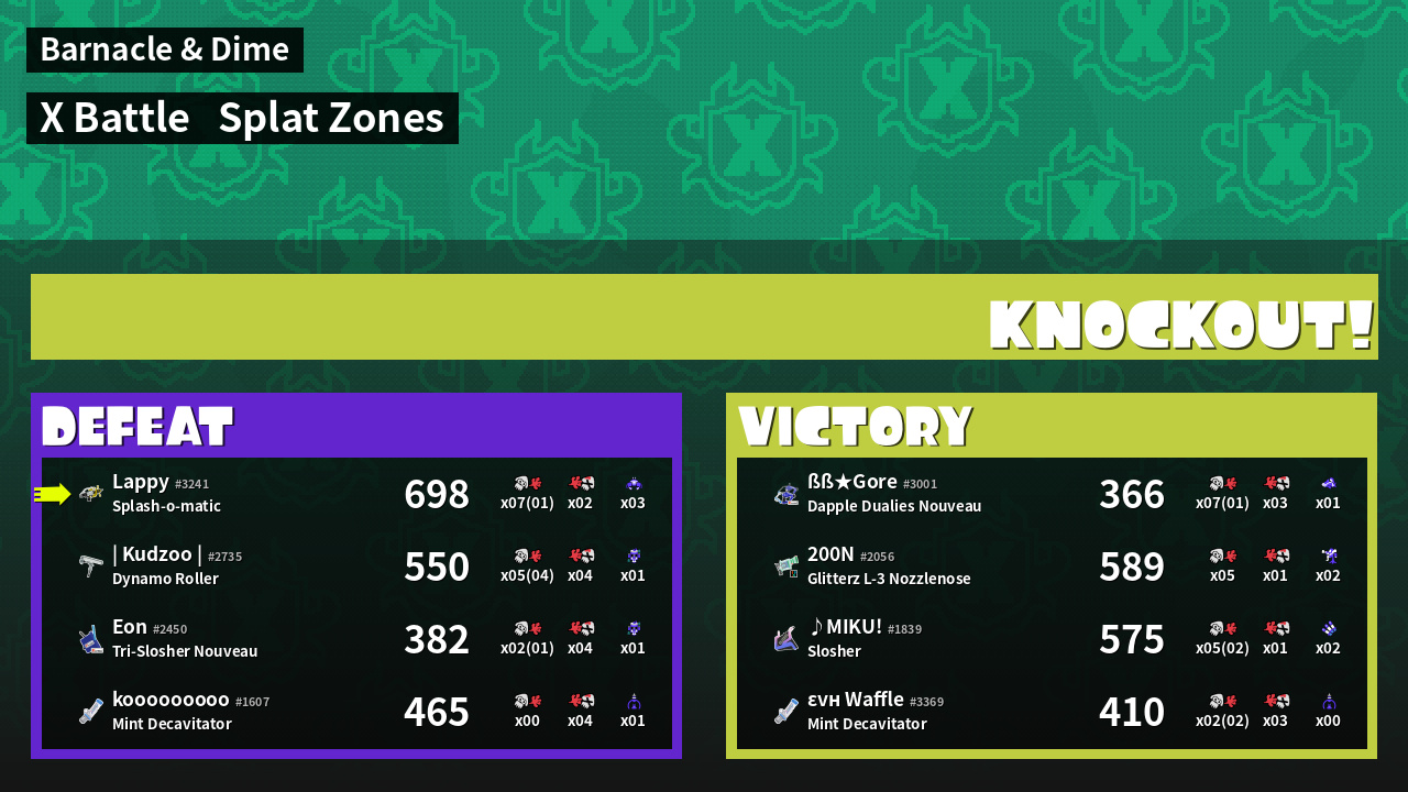 | Mode | Splat Zones - X Battle |