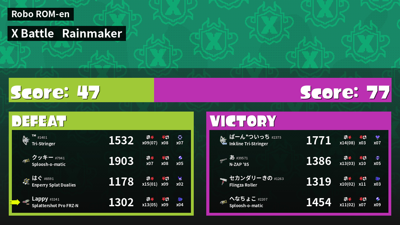 | Medals | #1 Rainmaker Stopper #1 Ink Consumer #1 Tenta Missiles User |