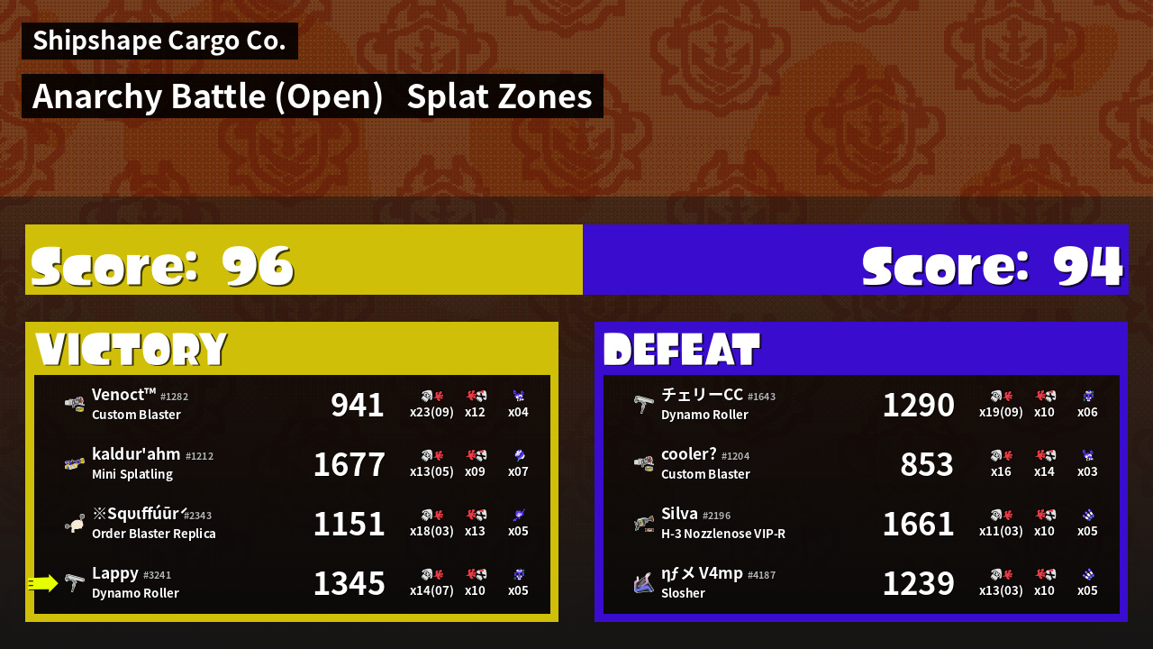 | Mode | Splat Zones - Anarchy Battle (Open) |