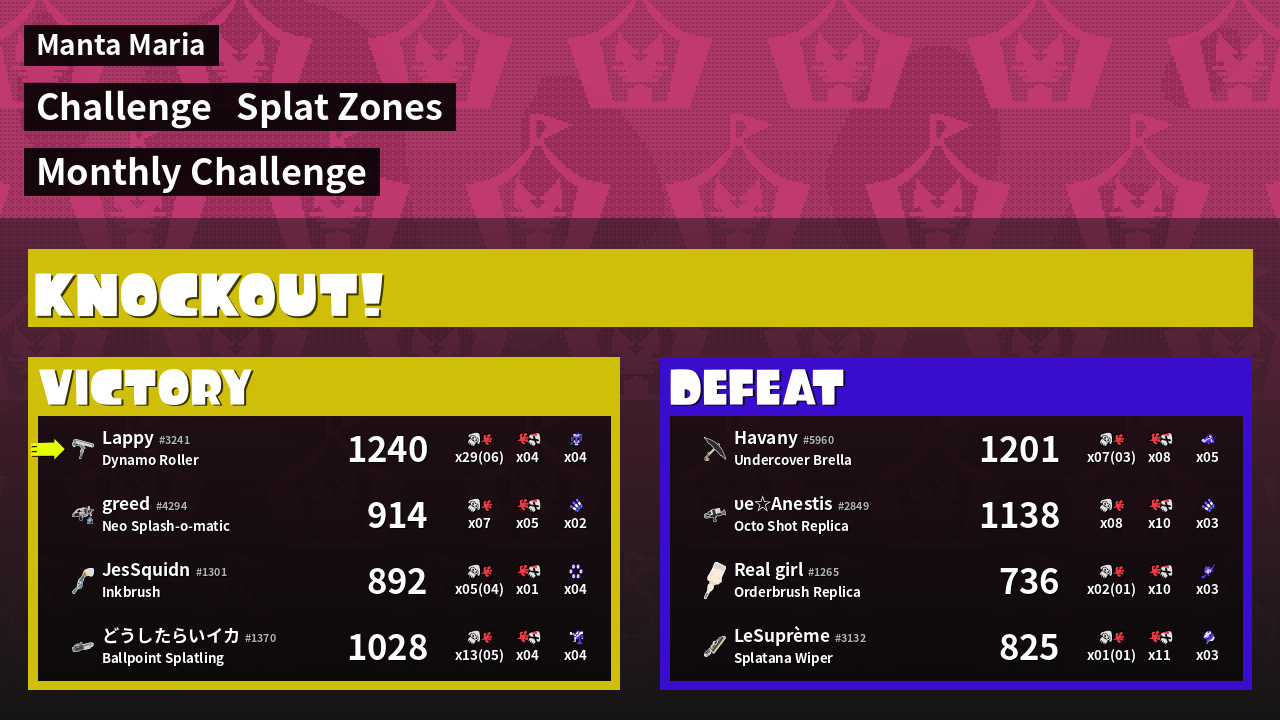 | Mode | Splat Zones - Challenge |