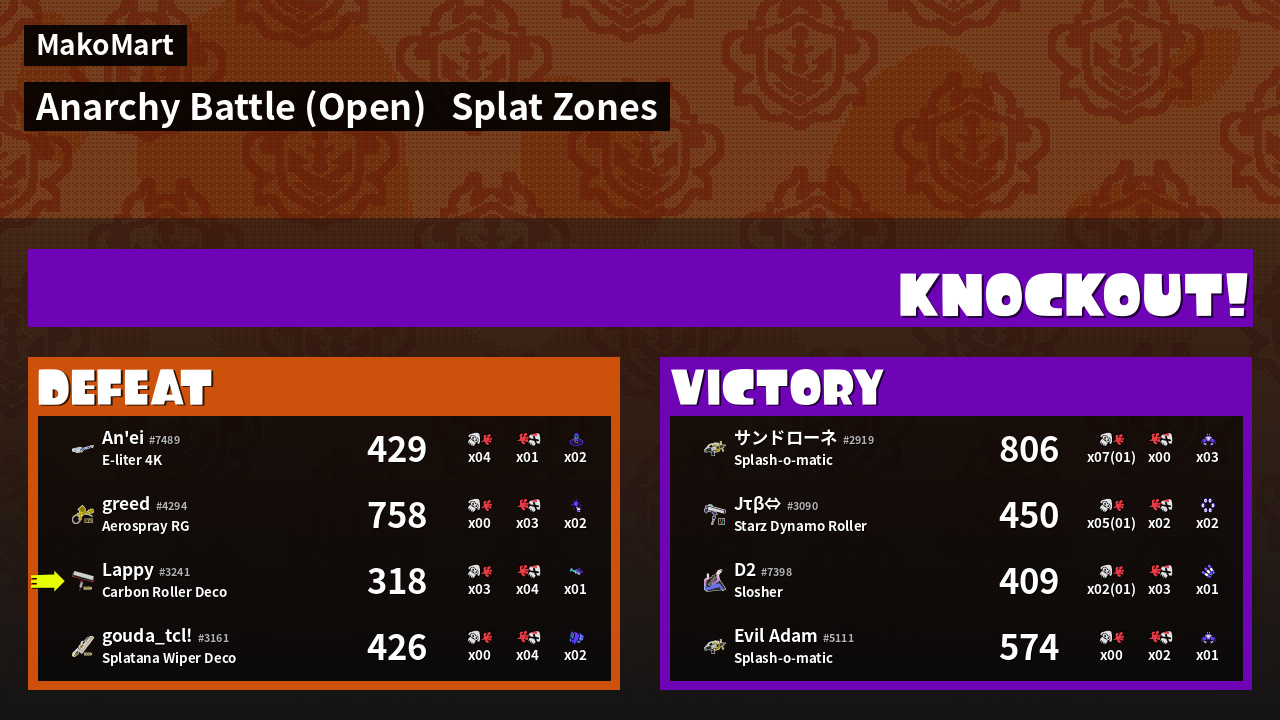 | Mode | Splat Zones - Anarchy Battle (Open) |