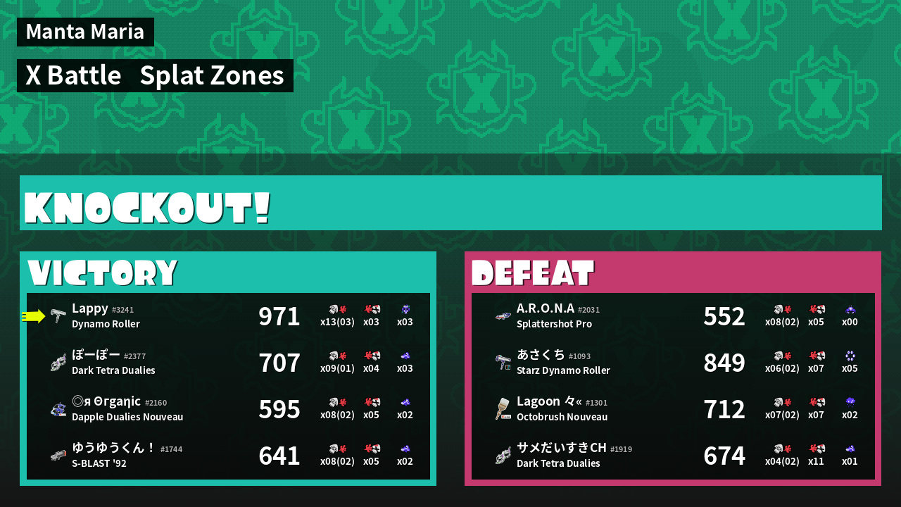 | Medals | #1 Overall Splatter #1 Splat Zone Inker #1 Splat Zone Guard |