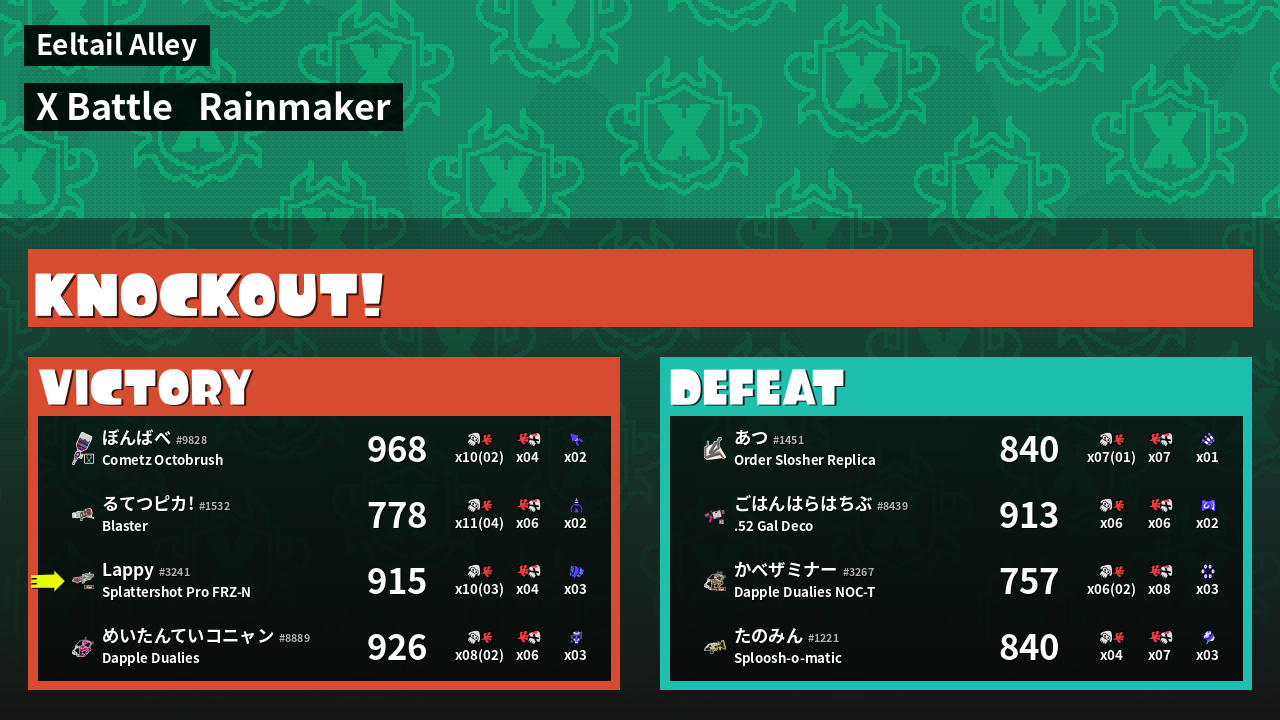 | Mode | Rainmaker - X Battle |