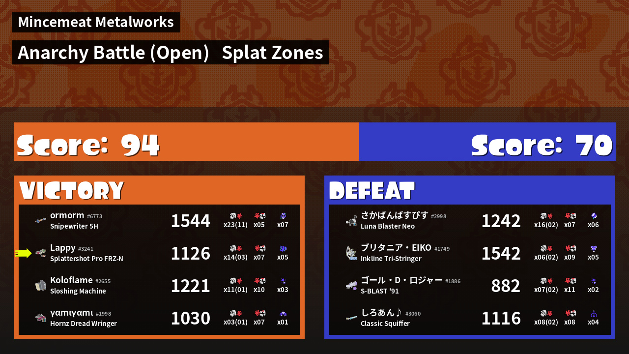 | Mode | Splat Zones - Anarchy Battle (Open) |