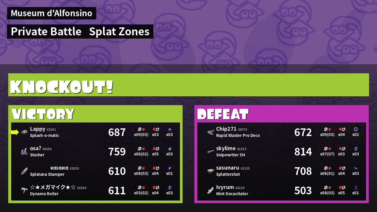 | Medals |   #1 Overall Splatter  #1 Splat Zone Guard  #1 Popular Target |