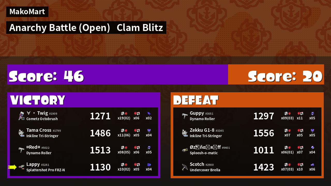 | Mode | Clam Blitz - Anarchy Battle (Open) |