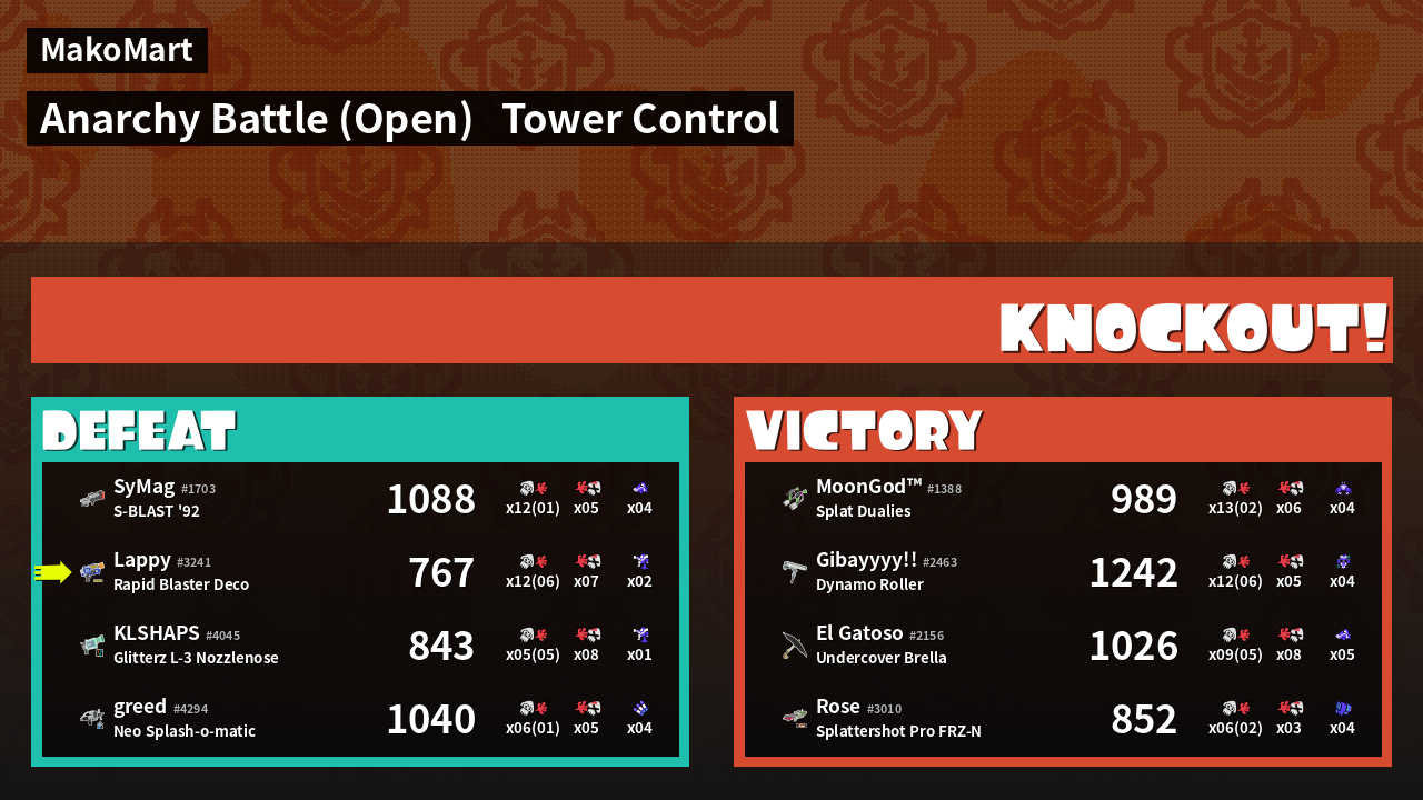 | Medals | #1 Overall Splatter #1 Splat Assister First Splat! |