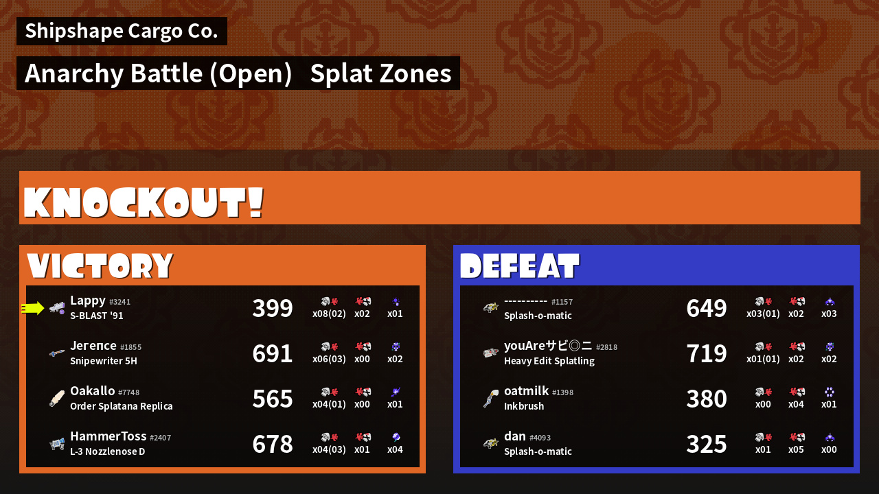 | Mode | Splat Zones - Anarchy Battle (Open) |