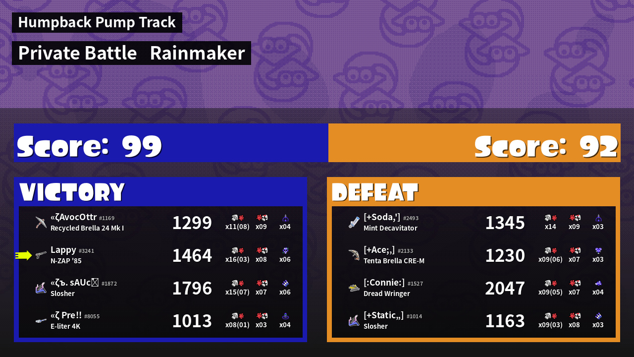 | Medals | #1 Overall Splatter #1 Enemy Splatter #1 Rainmaker Stopper |