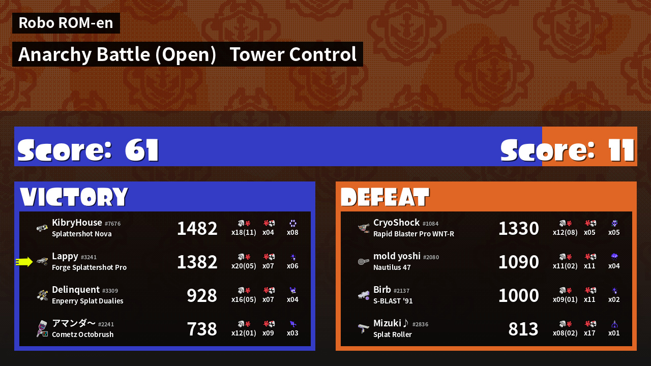 | Mode | Tower Control - Anarchy Battle (Open) |