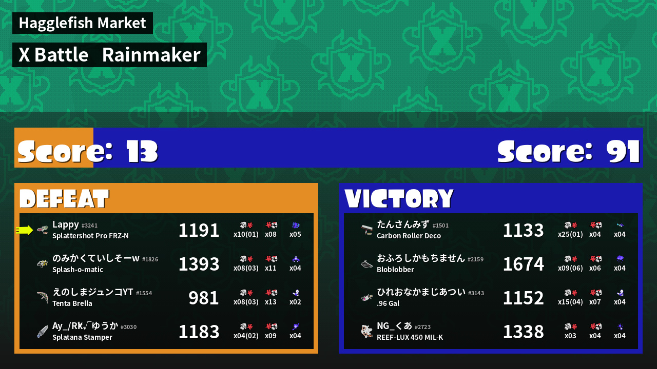 | Mode | Rainmaker - X Battle |