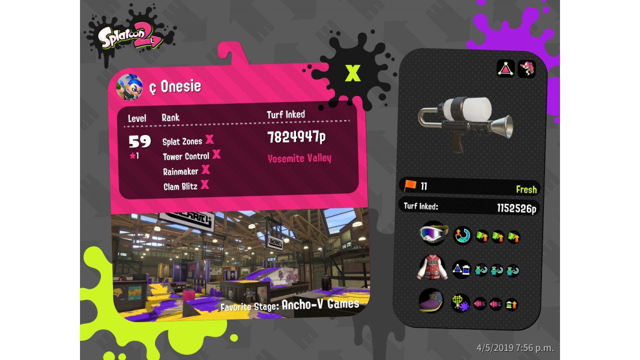 | SplatNet Battle # | 10,327 | ||||||||||||||||||||||||||||||||||||||||
