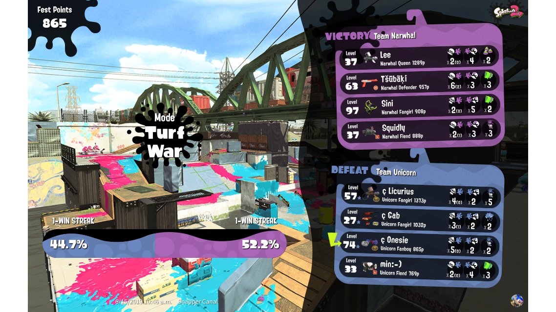 | Splatfest Title | Unicorn Fanboy 99 → Unicorn Fiend 19 | ||||||||||||||||||||||||||||||||||