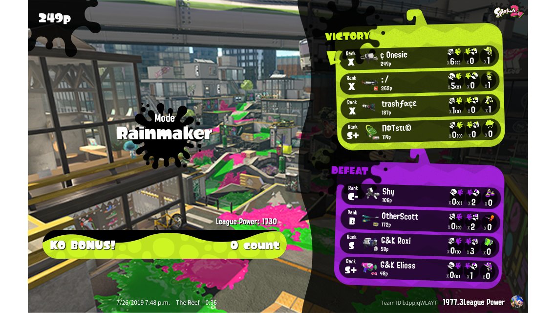 | Mode | Rainmaker - League Battle (Twin) | ||||||||||||||||||||||||||||||||||