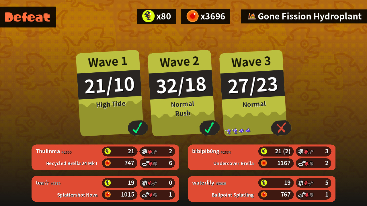 | Weapons | Recycled Brella 24 Mk I | Undercover Brella | Splattershot Nova | Ballpoint Splatling |