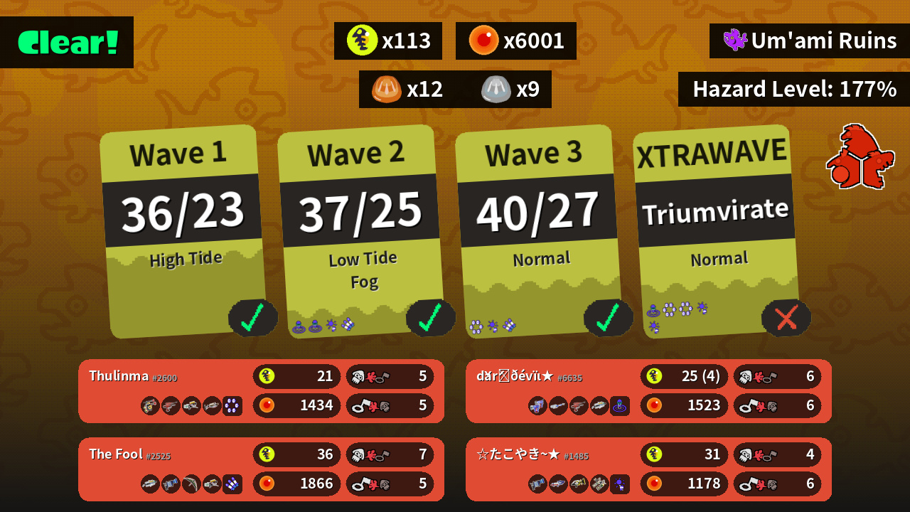 | Weapons | Douser Dualies FF Dualie Squelchers Grizzco Blaster Grizzco Charger | Grizzco Brella L-3 Nozzlenose Tenta Brella Grizzco Blaster | L-3 Nozzlenose Splattershot Pro Sploosh-o-matic Grizzco Dualies | Glooga Dualies E-liter 4K Dualie Squelchers Grizzco Brella |