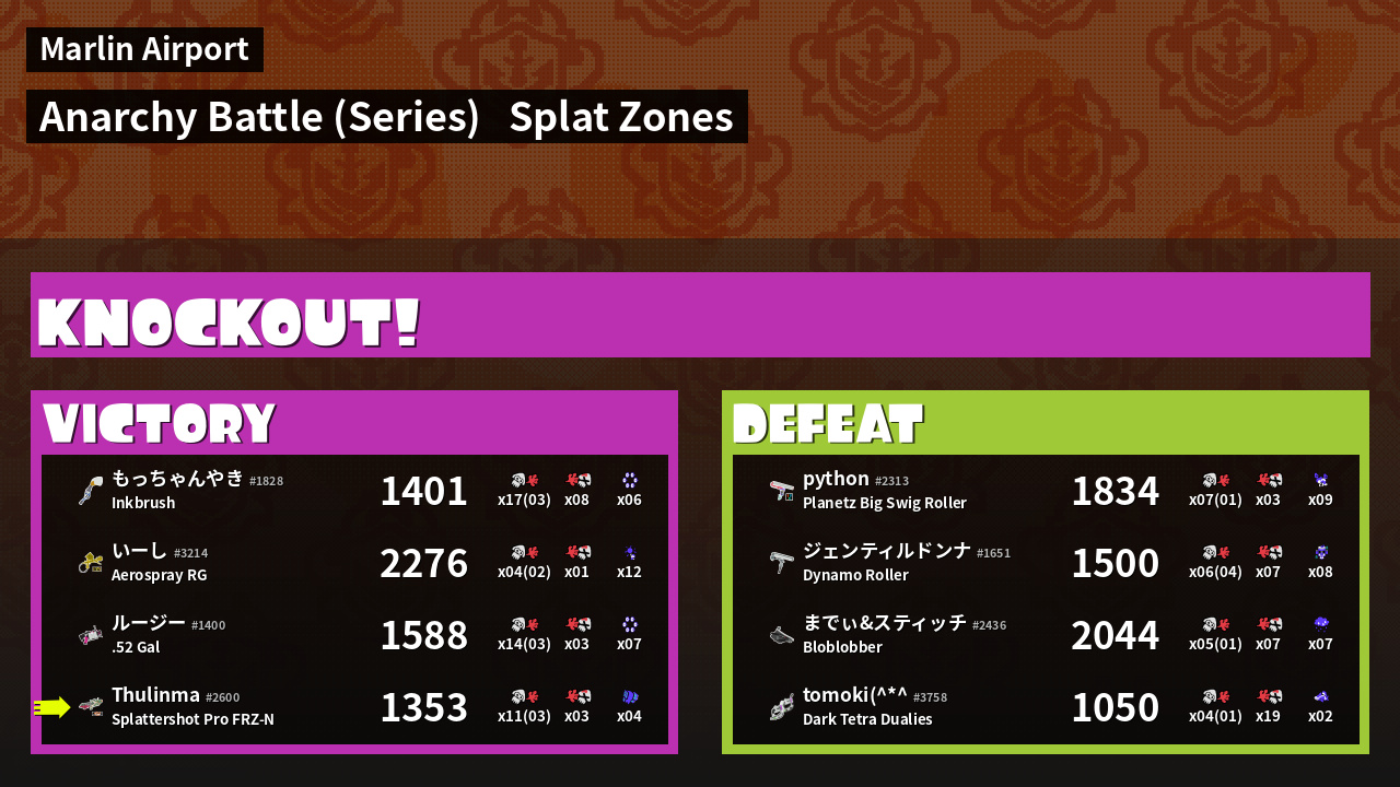 | Mode | Splat Zones - Anarchy Battle (Series) | ||