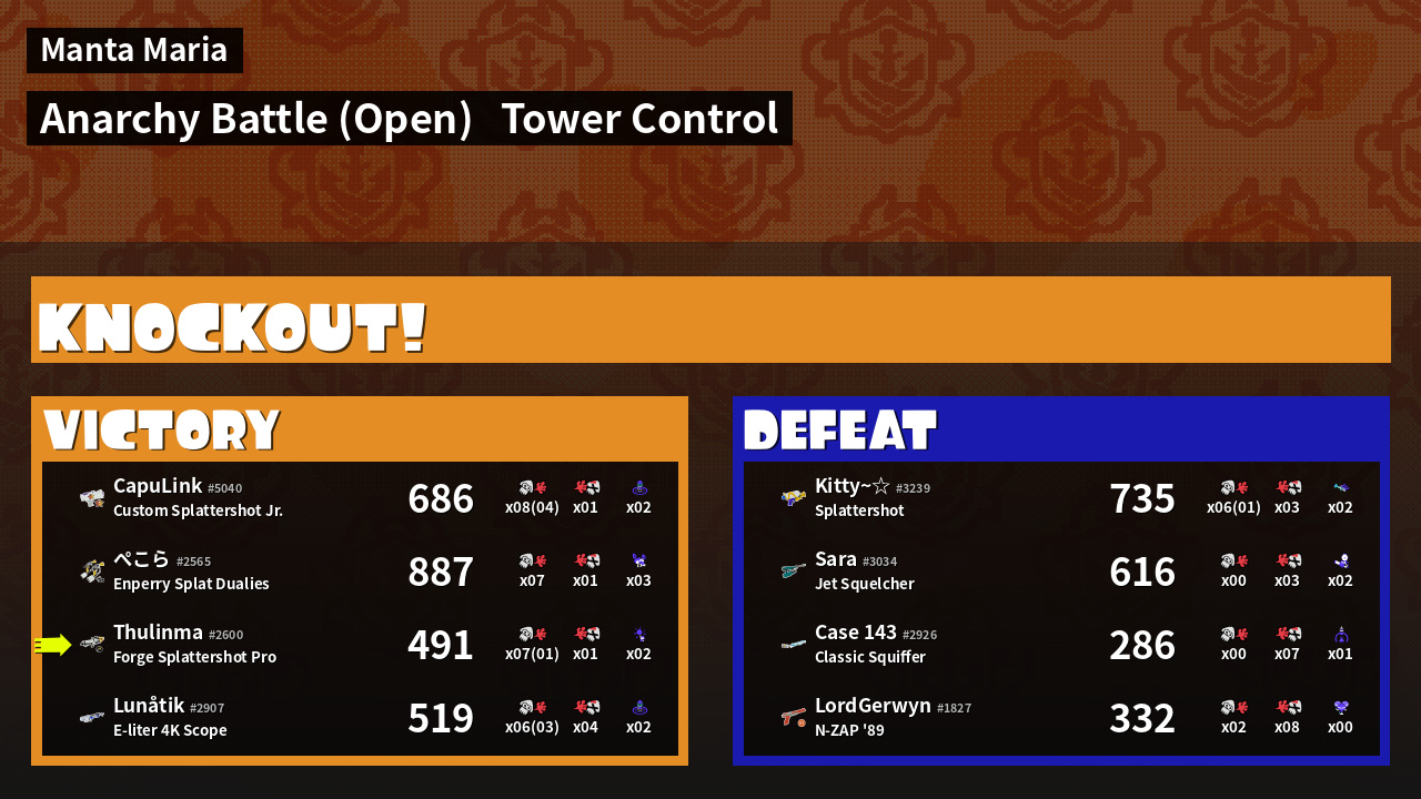 | Mode | Tower Control - Anarchy Battle (Open) | ||