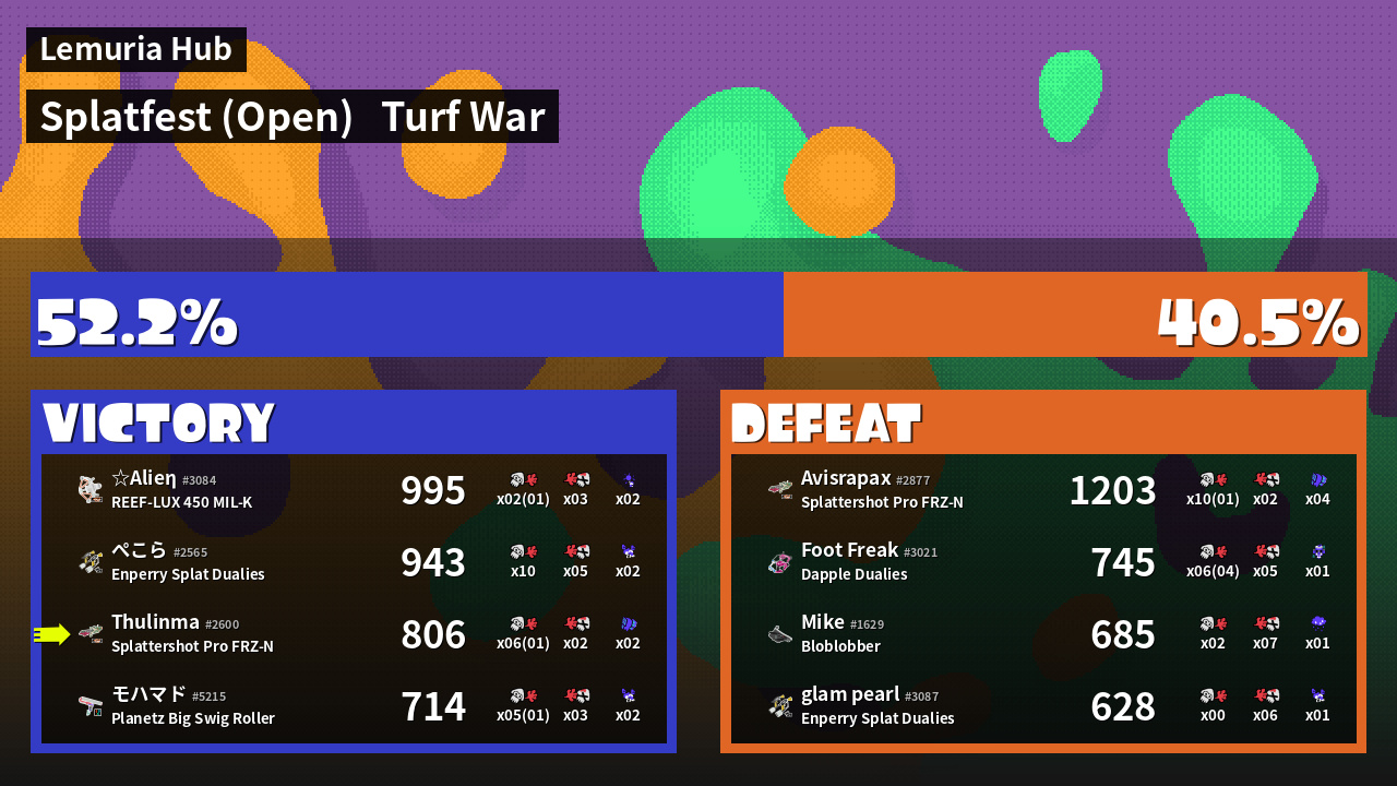 | Medals | #1 Popular Target #1 Super Jump Spot #1 Splat Assister | ||